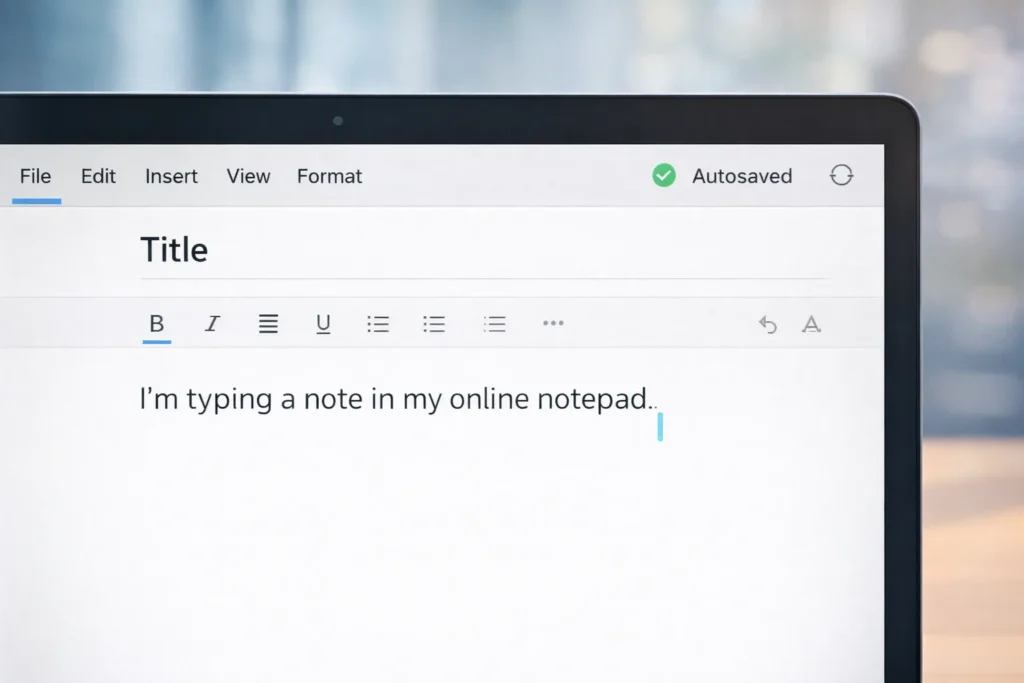 An Online Notepad With Autosave is a web‑based text editor that automatically saves everything you write as you type — without you having to press save manually. This means your content is stored either in your browser or in the cloud, so you don’t lose it accidentally.